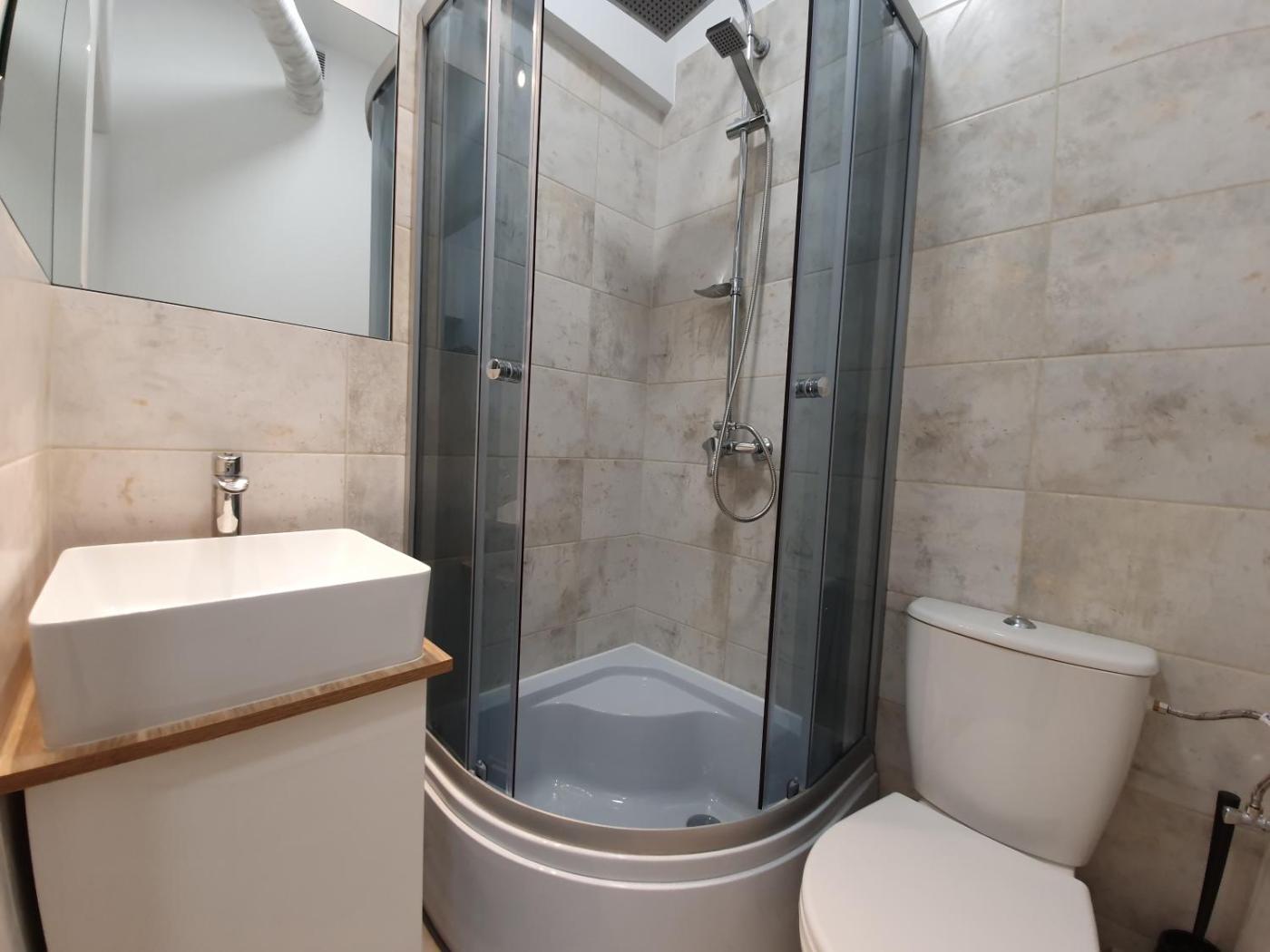 Studio. Meals can be prepared in the kitchenette, which comes with a stovetop, a refrigerator, kitchenware and an electric kettle. The studio provides a washing machine and a wardrobe, as well as a private bathroom featuring a shower. The unit offers 1 bed. Studio - 2 osobowy. Powierzchnia pokoju ok.: 12 mkw.