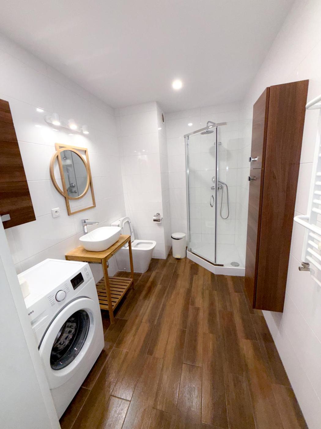 Apartament typu Standard. Featuring a private entrance, this apartment comprises 1 living room, 1 separate bedroom and 1 bathroom with a walk-in shower and a hairdryer. Meals can be prepared in the kitchen, which comes with a stovetop, a refrigerator, a dishwasher and kitchenware. The apartment provides a flat-screen TV with streaming services, a washing machine, soundproof walls, a tea and coffee maker as well as ancourtyard view. The unit offers 2 beds. Apartament - 4 osobowy. Powierzchnia pokoju ok.: 39 mkw. ;