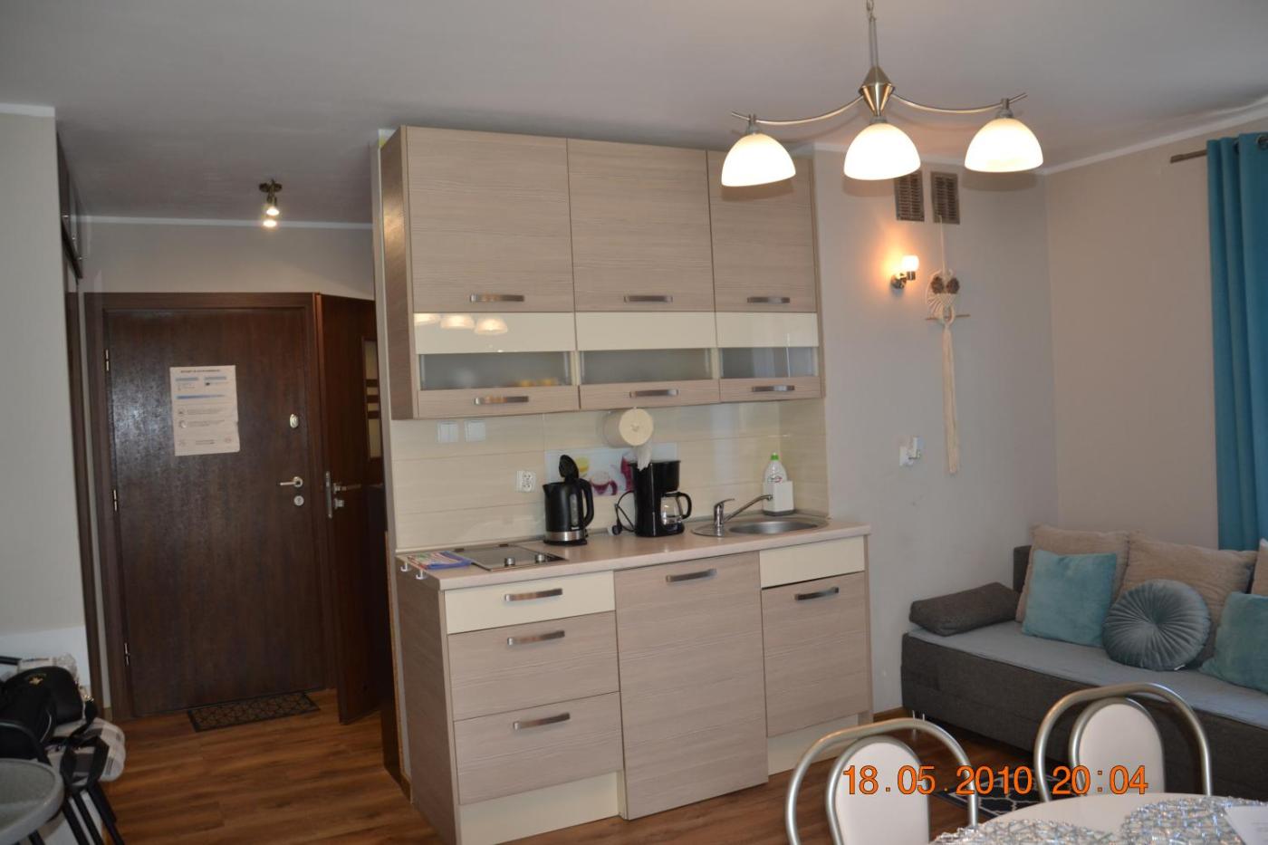 Studio. In the kitchenette, guests will find a stovetop, a refrigerator, kitchenware and a microwave. The studio provides a washing machine, a private entrance, a balcony with ancourtyard view as well as a private bathroom featuring a shower. The unit offers 2 beds. Studio - 4 osobowy. Powierzchnia pokoju ok.: 28 mkw. ;