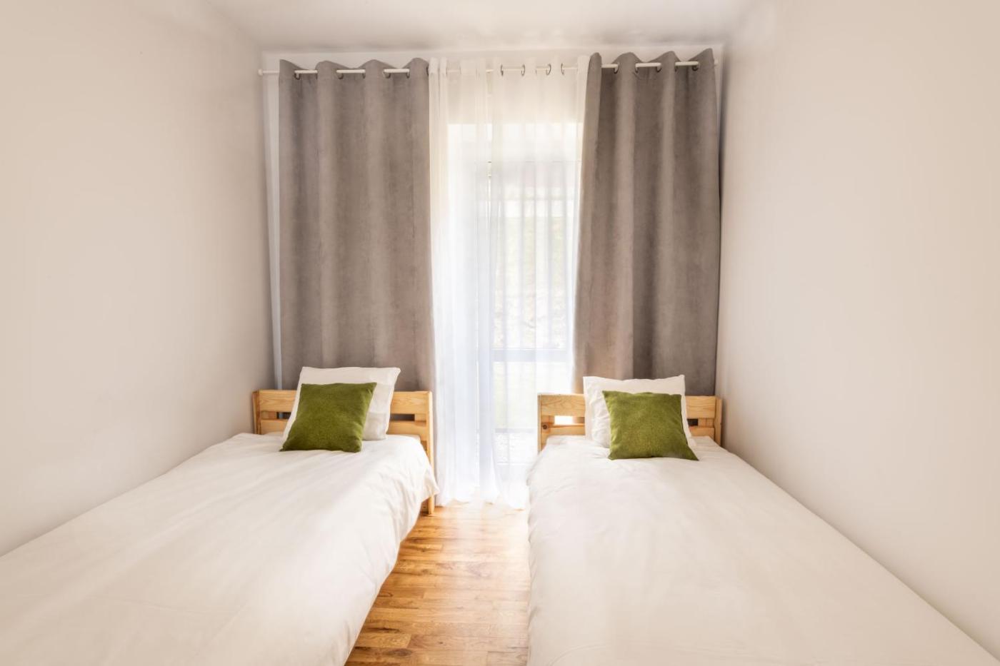 Apartament z 2 sypialniami. Ten apartament z oddzielnym wejściem mieści salon, 2 oddzielne sypialnie oraz łazienkę z kabiną prysznicową i suszarką do włosów. W dobrze wyposażonym aneksie kuchennym zapewniono płytę kuchenną, lodówkę, przybory kuchenne i czajnik elektryczny. Na gości czeka grill. Ten apartament dysponuje tarasem z widokiem na góry, częścią wypoczynkową oraz telewizorem z płaskim ekranem i dostępem do kanałów kablowych. W tej opcji zakwaterowania są dostępne 3 łóżka. Apartament - 6 osobowy. Powierzchnia pokoju ok.: 50 mkw. ;