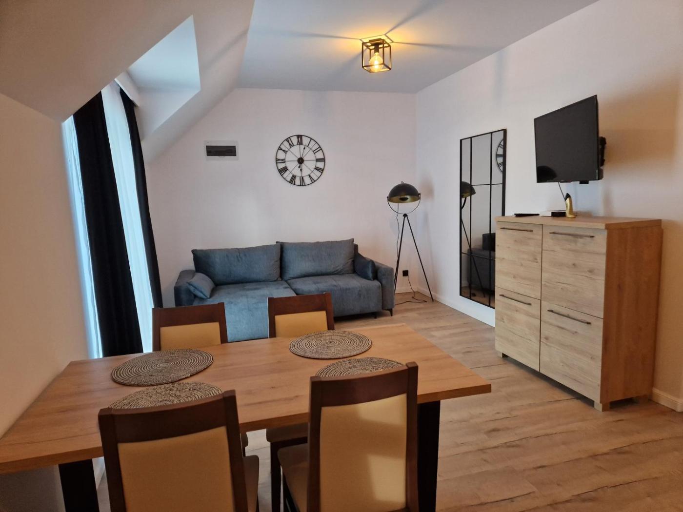 Apartament z 2 sypialniami. Featuring a private entrance, this spacious apartment also consists of 1 living room, 2 separate bedrooms and 1 bathroom with a shower. Guests can make meals in the kitchen that is equipped with a stovetop, a refrigerator, a dishwasher and kitchenware. Boasting a terrace with garden views, this apartment also provides a washing machine and a flat-screen TV with satellite channels. The unit offers 3 beds. Apartament - 6 osobowy. Powierzchnia pokoju ok.: 72 mkw. ;