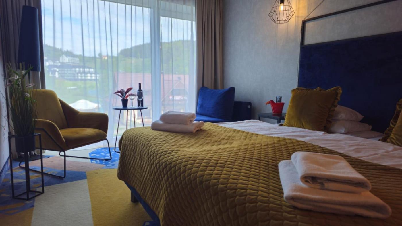 Pokój trzyosobowy z widokiem na góry. This air-conditioned triple room is comprised of a flat-screen TV with cable channels, a private bathroom as well as a terrace with mountain views. The unit has 3 beds. Pokój Trzyosobowy - 3 osobowy. Powierzchnia pokoju ok.: 23 mkw.