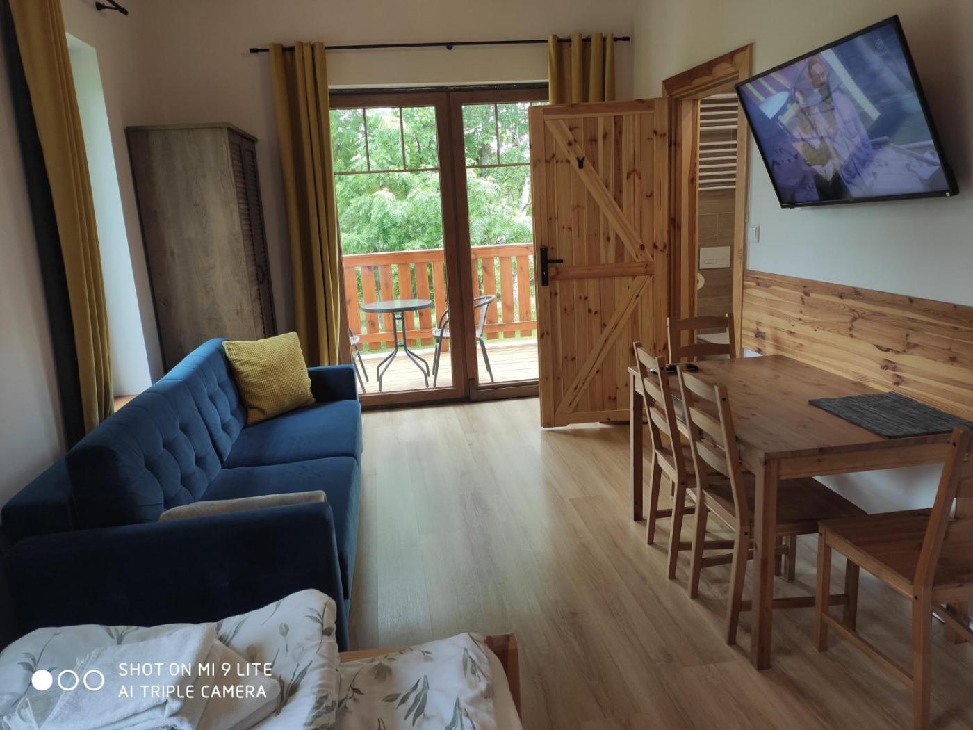 Studio. Guests can make meals in the kitchenette that is equipped with a stovetop, a refrigerator and kitchenware. The studio provides a tea and coffee maker, a wardrobe, a terrace with garden views as well as a private bathroom featuring a shower. The unit offers 2 beds. Studio - 4 osobowy. Powierzchnia pokoju ok.: 21 mkw. ;