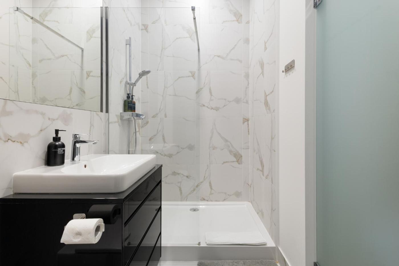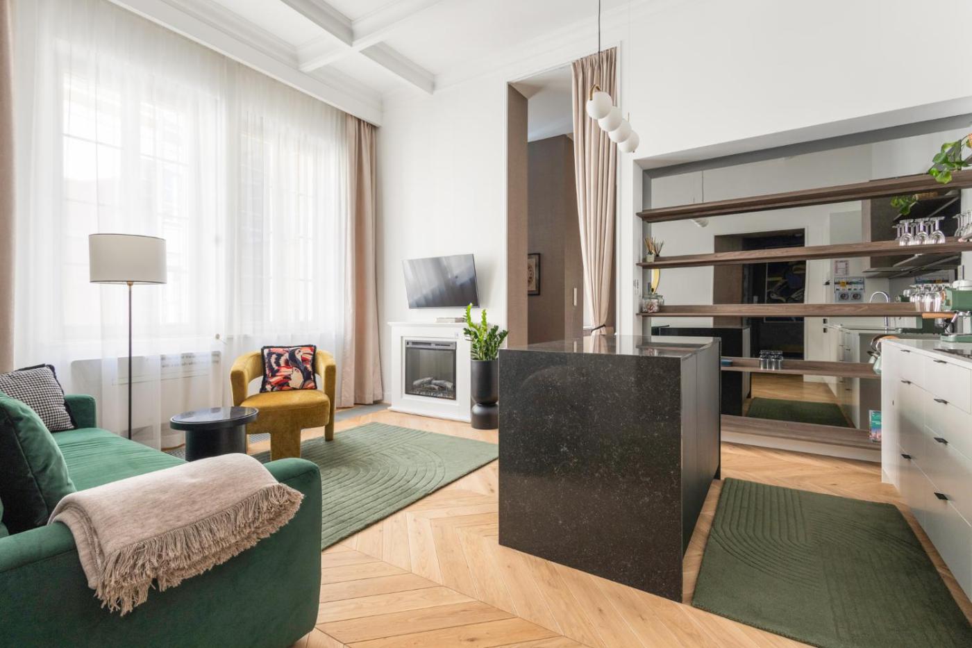 Apartament z 1 sypialnią. This apartment features a fireplace. Boasting a private entrance, this apartment features 1 living room, 1 separate bedroom and 1 bathroom with a walk-in shower and a hairdryer. The fully equipped kitchenette has a stovetop, a refrigerator, a dishwasher and kitchenware. Among the room amenities are a washing machine, soundproof walls, a tea and coffee maker as well as a patio and ancourtyard view. The unit has 2 beds. Apartament - 2 osobowy. Powierzchnia pokoju ok.: 44 mkw.