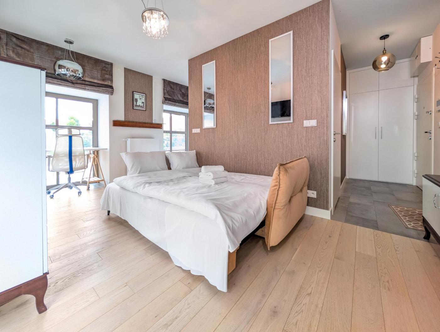 Studio. The studio features a private bathroom, a washing machine, a private entrance, as well as a seating area with a flat-screen TV. The well-equipped kitchenette has a stovetop, a refrigerator, a dishwasher and kitchenware. The studio provides a dining area, a wardrobe, an electric kettle, a sofa, as well as a TV. The unit offers 1 bed. Studio - 2 osobowy. Powierzchnia pokoju ok.: 27 mkw.